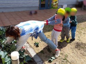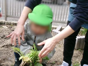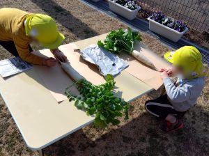 子どもたちと日々観察しながら大切に育ててきた野菜に触れ、